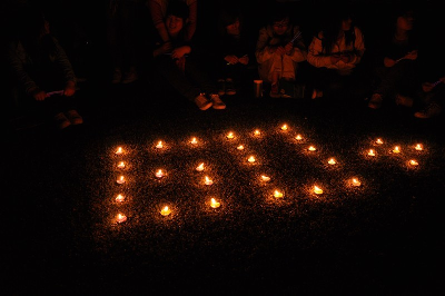 新闻中心讯(记者范晶晶鲍欢)3月31日晚20:30,8号宿舍楼大部分寝室的灯都熄灭了,只留下少数寝室的灯光聚成“60+”的字样。这是我校环保协会、摄影协会和微博协会策划的响应“地球一小时”熄灯活动。
