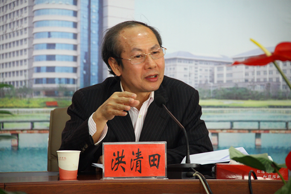 图为洪清田教授就中国民办高等教育的发展作了简短的报告