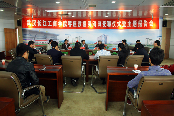 洪清田教授在授聘仪式上就中国民办高等教育的发展作了简短的报告。他以港人视角、世界的眼光谈中国民办大学的发展。他说,大学是社会和历史的产物,民办大学要思考如何回应社会和历史的需求,发挥比较优势,研究探讨一些新的学科。“武汉长江工商学院是一个很有潜质的机构,其发展潜力是无限的,你们可以思考学校如何培养人才,学校未来的前景等”,洪教授认为,新大学的优势在于对市场的敏锐度较高,但是也有一些面临的问题,比如社会认知度。