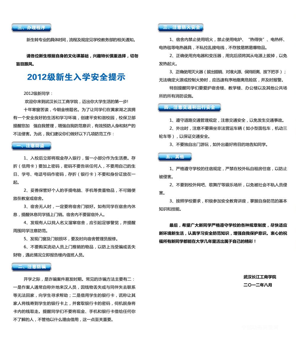【招生信息】2012年新生入学报到须知