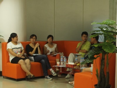 图为青年教师正在交流学术问题 摄影:吴海廷