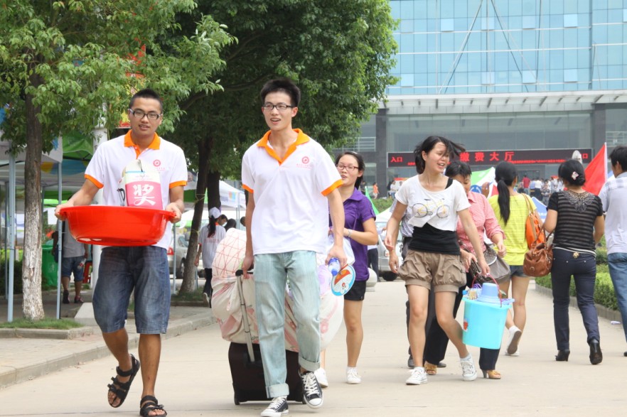 社团联合会、校学生会、校青年志愿者协会以及各学院志愿者都纷纷投入到忙碌的迎新工作中。