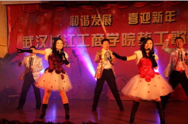 此次歌舞比赛分为歌曲和舞蹈两部分。在上半场歌曲比赛中,各学院、单位的教职工们带来了激情洋溢的歌曲联唱、乐队演唱和大合唱。国际教育学院的外教们组成乐队为全场观众带来了一首十分动听的英文歌曲《Time of your life》;政法学院带来的《天路》,将少数民族舞蹈和歌曲巧妙融合;学工部的老师们更是组成了“四男四女”的歌舞表演组合,为大家带来一首《最炫民族风》,炫彩的服饰、动感的旋律、奔放的舞姿将晚会气氛推向了高潮。