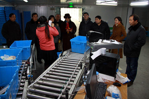 华中科技大学管理学院金凌志书记(右四)在我校领导的陪同下参观我校家事易物联网研究院 摄影:张金华