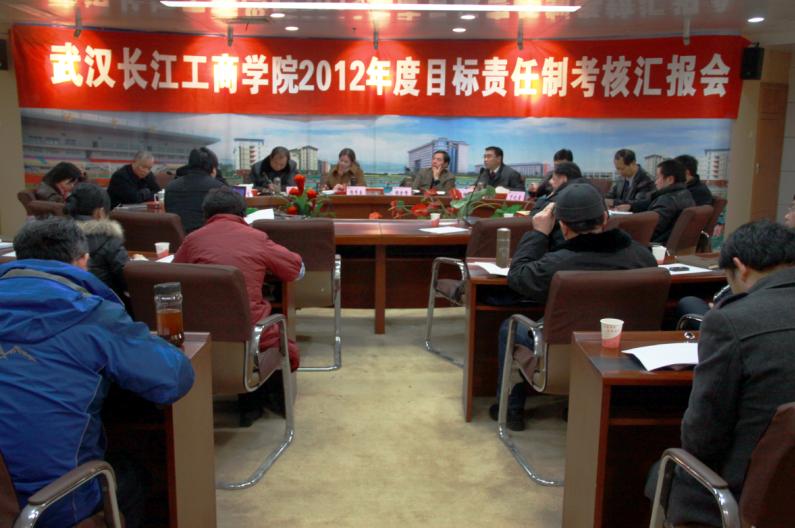 新闻中心讯(记者 万风)1月5日,我校2012年度目标责任制考核汇报会在第一会议室召开。校董事长彭秀春、校长张金隆、党委书记陈伟等校领导出席会议,各二级学院领导及职能部门领导、教职工代表参会。