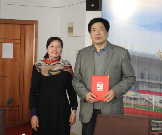 图为张金隆校长为童光荣教授颁发聘书 摄影:林倩