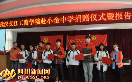 活动中,回访小组结合自身实践经验,通过ppt向同学们介绍了大学的特色和大学生活,在汇报交流中,学长学姐们还为同学们解疑答惑,交流高三阶段学习方法和重点、心理调适、志愿填报等的经验。同时,武汉长江工商学院还为小金中学捐赠了10000元的教学资金,为5名贫困学子捐赠了助学金。