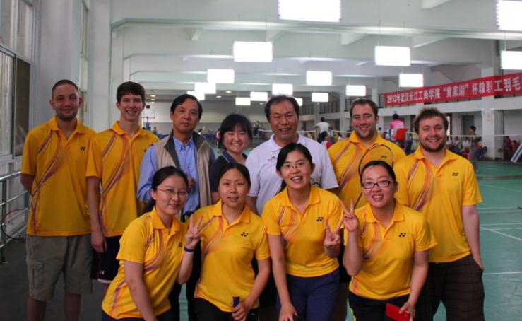 文法学院已近花甲之年的李未熟老师在赛场上的表现丝毫不逊于年轻小伙,他一连打出几个漂亮的平抽球并以一个吊球结束了一个回合。4名来自国际教育学院的外教也不甘落后。来自英国的Ben和他的女搭档一起左突右击,严防死守,连连扣杀,成为一对非常强势的组合。“It’s surprise. I enjoy the game. ”Ben高兴地说。
