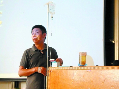 武汉晨报:六旬教师吊针上课