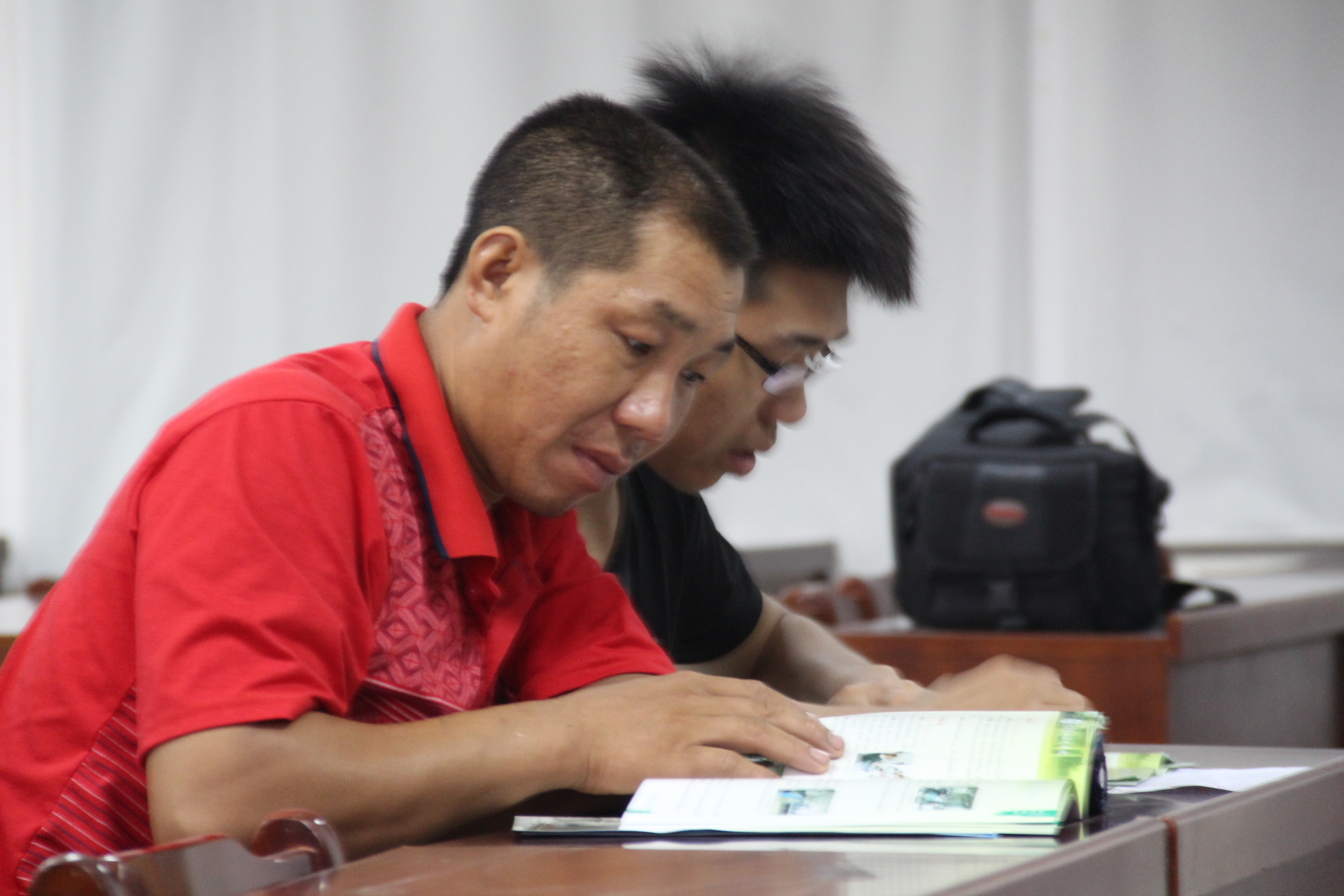 图为家长和考生认真阅读我校的招生简章 摄影:张承立