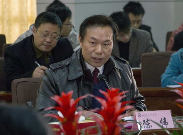 陈伟致欢迎词,他说,学校正处在承前启后、继往开来的重要时刻,全校师生十分期待厉无畏先生对学校发展的热忱指导和帮助。他介绍道,厉无畏是国内外知名的经济理论权威,长期从事产业经济、数量经济、创意产业和经济管理等方面的研究工作,同时在国有企业改革、经济转型等重大问题上都发表了重要见解,并充分运用自己的专业常识参政议政,2007年任民革中央常务副主席、2008年任全国政协副主席;厉无畏还是一位儒雅的经济学家,同时也是一位充满丰富情怀的诗人,在六十岁时开拓了一个全新的研究领域——创新产业,成为我国创意产业研究的学术领军人,被业界誉为“中国创意产业之父”,2007年获得中国创意产业杰出贡献奖,著作《创意改变中国》获得“全球文化产业学院奖”的“思想驱动奖”,2013年厉先生获得了“辉煌中国·十大时代经济精英人物”奖。
