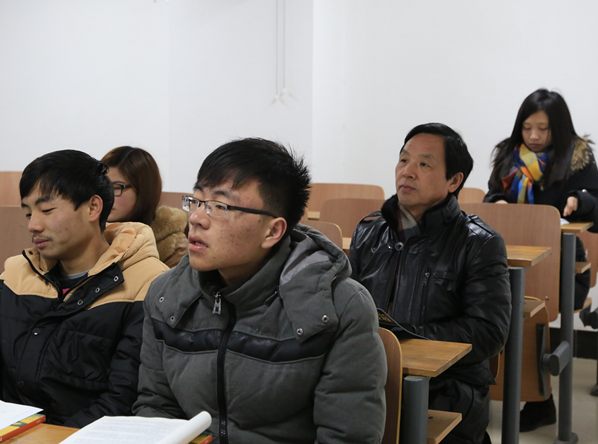 张金隆校长先后来到综合楼707教室、611教室,坐在教室后面听课。在707教室,青年教师王巍为管理学院会计专业13级学生上计算机基础课(VB),张金隆认真听完一节课后,亲切地与坐在一旁的学生朱美玲聊了起来。“你对自己今后的学习有什么规划?”朱美玲告诉校长,自己将来准备考研,所以要认真学习专业知识,同时争取多考一些专业的资格证书。张金隆还和王巍老师交流了听课的体会和授课的经验。王巍老师坦言,看到校长来听课,讲课的时候感到有些紧张。张金隆很爽朗地笑着鼓励她:“你讲得很不错,不必紧张”,然后他结合自己的听课体会,建议她上该课程第一次课时注意要将“计算机基础课和专业课结合”、“上学期学的课程与本学期的课程结合”、“板书和PPT结合”。随后,张金隆又来到了611教室,听了法学专业11级学生的专业课。
