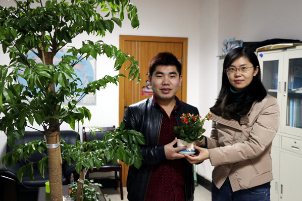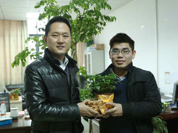 郑建丰是该校管理学院管理双能实验班第一期的毕业生,该班主要培养创业人才。毕业后,热衷创业的他创办了武汉万秋山园林工程有限公司,目前公司运营状况良好。“今天回母校给老师们送植物盆栽,主要是给老师们送上节日的祝福,希望给老师们营造一个‘绿色环保’的办公环境,让老师在忙碌的工作之余陶冶情操、修身养性,最重要的是感谢母校老师当年对我的辛勤栽培”,郑建丰诚挚地说。