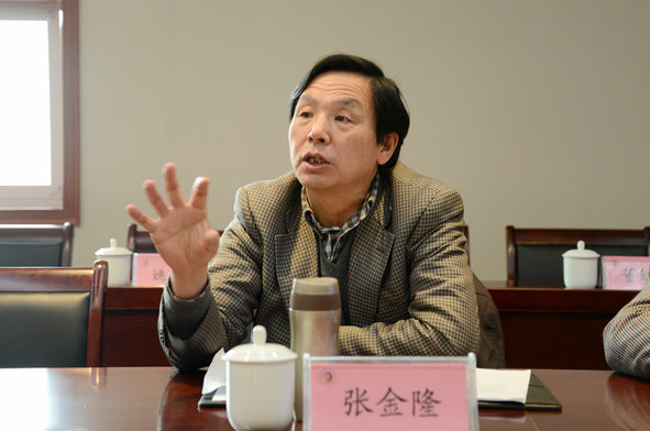 图为校长张金隆在座谈会上发言 摄影:彭宠