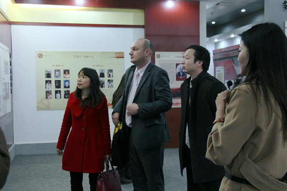 图为Mr. Simon Kelly和英国北安普顿大学参观我校校史馆 摄影:林典