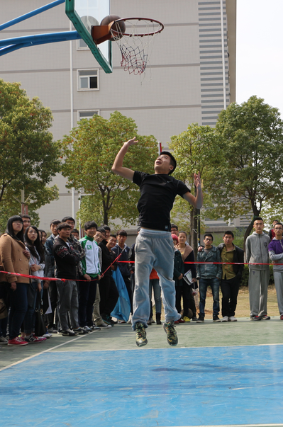 新闻中心讯(记者 李洋洋)武汉长江工商学院第十二届“七彩”文化节系列活动之三分、扣篮、技巧大赛于3月21日中午在体育馆前篮球场激烈上演,管理学院马志远凭借8个进球摘得三分项目桂冠,电商学院关鹏以80分的满分获扣篮项目冠军,经外学院李铭以15秒的好成绩获得技巧项目的冠军。