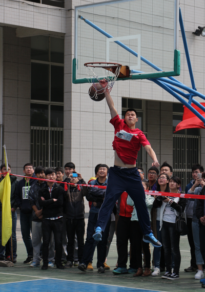随后的扣篮项目比赛中,每位选手共有3次机会,来自电商学院的关鹏可谓力压群雄,助跑、起跳、飞跃、接球、暴扣,球稳稳当当地落进球框,引得周围的观众连连叫好,8位评委均给出了满分,关鹏也被大家封为新一届的“扣篮王”。此外,来自民族教育学院的韦庆殷排名第二,来自电商学院的蓝超排名第三。