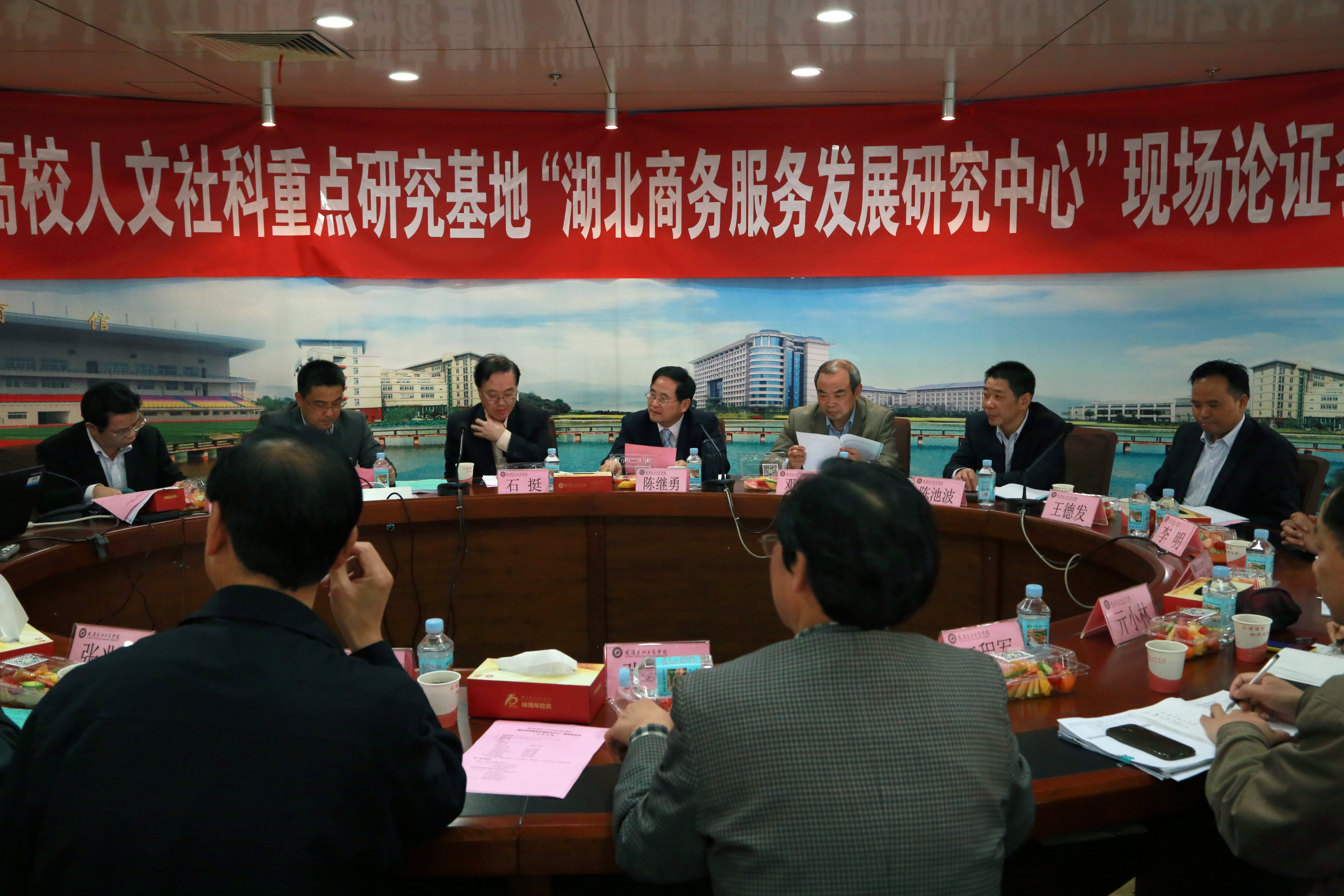 新闻中心(特约记者 曾荷爱)2014年4月15日下午,湖北省人文社科重点研究基地 “湖北商务服务发展研究中心”现场论证会在武汉长江工商学院召开。由教育厅认定的论证会专家组成员7人出席会议。武汉长江工商学院校长张金隆、副校长刘腾红以及学校管理学院、经济与商务外语学院、科研部、人事部、财务部等部门负责人参加会议。