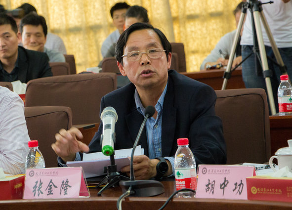 图为武汉长江工商学院校长张金隆在调研会上发言 摄影:李鳌