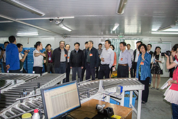 在现代物流与电子商务湖北省协同创新中心示范工程基地,视察团饶有兴趣地参观了物流配送电子分解线,了解了学校与家事易公司开展校企合作,实现产学研一体化的新机制,并在解说员的演示下了解电子菜箱的使用方法。“这种购物方式很便捷,不错!”视察团领导们啧啧称赞。