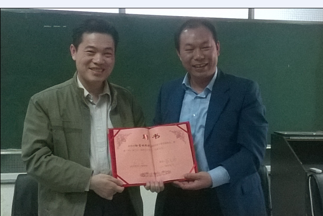 亓小林部长宣读了关于有关机构调整及相关人事任免的红头文件。陈伟书记为信息工程学院新任院长孙宝林颁发聘书。