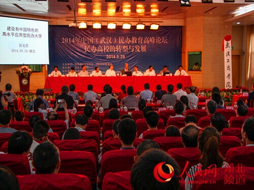 人民网武汉5月30日电(狄奥 蓝静)29日,由民革湖北省委员会、国际投资促进会主办,武汉工商学院承办的2014中国(武汉)民办教育高峰论坛在武汉工商学院举行,十一届全国政协副主席厉无畏及国内外知名专家学者、众多民办教育负责人齐聚一堂,聚焦民办高校转型发展,破解转型发展难题,为民办高校未来的生存和发展之道支招。