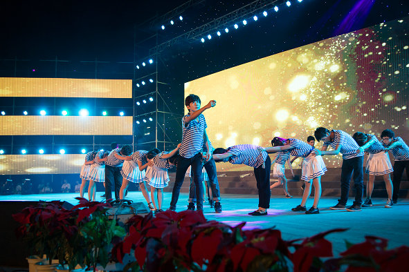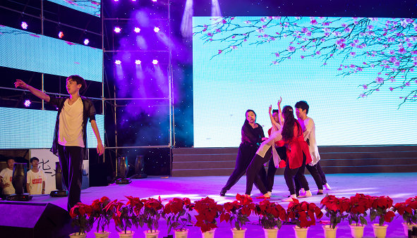绚丽夺目的舞台、流光溢彩的荧光棒、响彻云霄的欢呼声……晚会现场热闹非凡。校舞龙队带来了一场生龙活虎的《双龙戏珠》表演,空翻、后仰、直立、摆尾,动作敏捷,气势如虹,展示了工商学子朝气蓬勃的精气神;校啦啦队一段激情四射的舞蹈《激情之夏》更是点燃了现场气氛,队员们以优美的舞姿、动感的绚丽,跳出了青春的“健”与“美”;经济与商务外语学院带来的双节棍武术表演别出心裁,将双节棍与武术相融合,将武术的力量与技巧展现得淋漓尽致;阳光部落剧社带来的话剧《山里的太阳》,更是将该校杰出校友、全国最美乡村女教师邓丽支教的感人事迹搬上了舞台,真实地重现了邓丽扎根山区、奉献自我的高尚情怀,感动了现场的无数观众;信息工程学院、环境与生物工程学院、艺术与设计学院联袂演绎的舞蹈《致青春》,以一首首温暖怀旧的校园歌曲表达了学生们对学校、对老师的眷恋,对如歌岁月的回忆和对美好未来的期冀;文法学院少数民族学生带来的歌曲《高原红》以极具感染力和穿透性的歌声将观众们的心带到了美丽的大草原……精彩纷呈的节目让师生们大饱眼福,掌声、喝彩声此起彼伏。