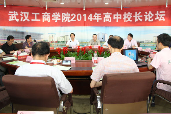 新闻中心讯(记者 李正)5月29日下午,2014年高中校长论坛在武汉工商学院在第一会议室举行。湖北省招生办副主任周则顺、武汉工商学院校长张金隆、校党委书记陈伟、招生与就业工作部常务副部长朱宜及湖北省内90多所高中校长、师生代表参加了本次论坛。论坛由朱宜常务副部长主持。