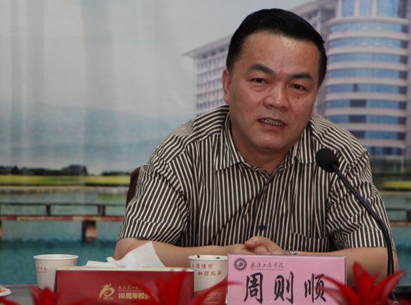 周则顺副主任充分肯定了武汉工商学院的人才培养特色。他说,近年来,民办高等院校的社会认可度在不断提高,民办高校的招生数量和占据的比例也在不断上升,为我省高等教育做出了不可磨灭的贡献,是高等教育的重要组成部分,也是新的增长点。他表示,民办高校的发展离不开各中学的宣传与支持,希望各高中校长到各高校实地考查,让学生对就读民办院校有个正确的认识。”他还介绍了今年招生录取政策的新变化。最后,他对武汉工商学院更名表示祝贺,他说,希望武汉工商学院以更名为契机,加强内涵建设,提高教育教学质量,打造品牌,为湖北省的教育发展做出更大的贡献,也预祝武汉工商学院的明天越来越好。