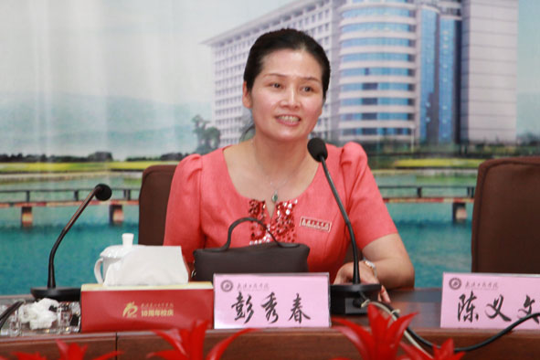 董事长彭秀春亲切致辞,她代表武汉工商学院全体师生员工,向各位校友们的到来表示欢迎,对校友会第二届理事会的成立表示祝贺,对校友长期以来对学校的关心和支持表示感谢。她深切地说:“正是由于一届届校友们的开拓进取,薪火相传,才有了母校今天的进步,你们的事迹,你们的品德,你们的贡献,为母校留下一笔宝贵的精神财富,你们永远是母校的的骄傲,是母校坚强的后盾,是激励母校不断前进的不竭动力。”她希望校友们继续为学弟学妹做表率,一起为学校的发展而努力,并欢迎广大校友常回母校来看看,母校永远牢记大家。