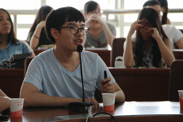 图为参加中加“2+2”项目的学生向大家分享留学经验 摄影:李杨