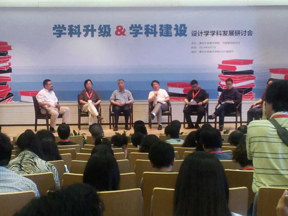 新闻中心讯(特约记者 刘柳)6月7月上午,武汉工商学院艺术与设计学院副院长王海文,教师王春霞、李由、徐郑冰、柳薇一行6人应邀参加了在清华大学召开的2014年“学科升级与学科建设——设计学学科发展研讨会”。全国200多所高校艺术设计领域的专家参加了此次设计学科盛会,清华大学副校长王明旨教授,清华大学美术学院院长鲁晓波教授,清华大学美术学院副院长张敢副教授,郑署旸教授,中央美术学院许平教授,浙江大学孙守迁教授,中国美术学院吴海燕教授,深圳大学吴洪教授,南京理工大学李亚军教授,武汉工商学院顾问、湖北工业大学许开强教授,华东师范大学魏劭农教授等25名设计名家主持了4场别开生面的讨论会。