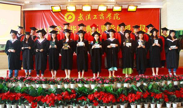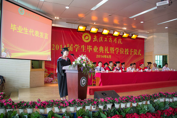 新闻中心讯(特约记者 罗袁璐)6月17日上午9:00,武汉工商学院2014届毕业生毕业典礼暨学位授予仪式在学术报告厅隆重举行。3081名本、专科毕业生获得毕业证书,2245名本科毕业生获得学士学位。