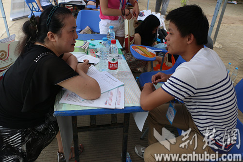 图为家长向武汉工商学院招生工作人员咨询情况 (李杨 摄)