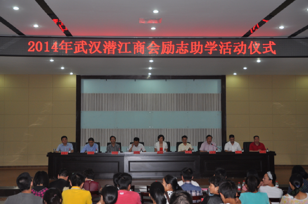 潜江市政府副市长王玉梅、潜江市教育局局长王绪军、党委书记王培训、武汉潜江商会会长巴能军、武汉工商学院校长助理左宗文、武汉潜江商会捐赠本次奖学金的企业领导以及潜江中学部分师生出席大会。