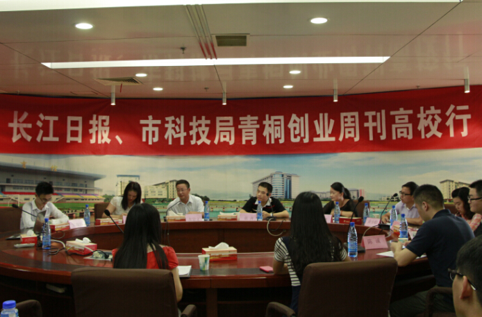 新闻中心讯(记者吴田芳)9月2日下午,长江日报、市科技局青铜办联合组织的“青桐创业周刊高校行”活动报告组走进武汉工商学院,武汉市科技局青铜办负责人张舟介绍了“青铜计划”相关扶持政策,武汉范琦珠宝饰品创始人、武汉市首届大学生创业先锋代表吴锟钰,武汉光谷咖啡之翼咖餐厅总经理、武汉工商学院校友、“霸气哥”黄小松先后介绍了自己的创业经验。参加报告的还有长江日报记者陈诚、熊琳辉,武汉工商学院校长助理左宗文,宣传策划部部长狄奥、团委书记吴艳及60名对创业感兴趣的学生代表。