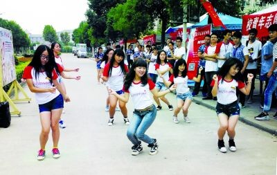 “快看,‘女神’跳起了‘小苹果’!”15日中午,在武汉工商学院社团招新现场,校青年志愿者协会的会员们为了吸引新生报名,在现场跳起了一段动感火热的“小苹果”,领队杨鸾以自信的微笑、漂亮的面容被新生们直呼“女神”。
