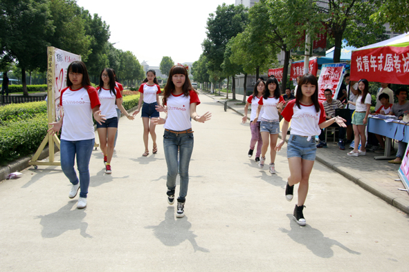 舞蹈领队杨鸾告诉记者,自己是该校人力资源管理专业的大二学生,去年因为对志愿服务工作的热爱而加入青协。“我自己爱好舞蹈和文艺,本次招新特意排练了几天‘小苹果’,目的是为了吸引更多人加入志愿服务的队伍”,她还告诉记者,跳完舞后,很多新生都来到协会报名点报名了。