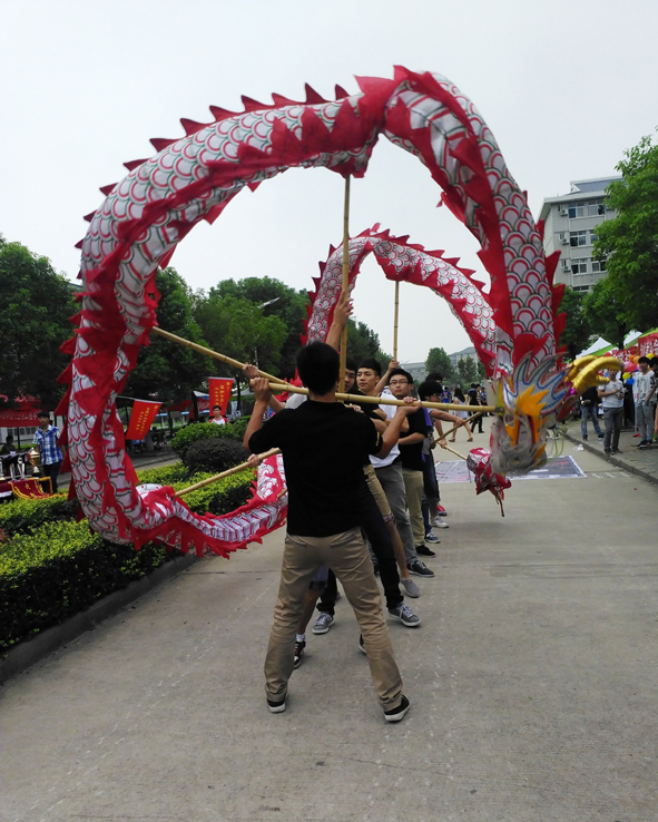 除此之外,精英舞龙社的社长带领着会员们现场舞起了龙狮,生龙活虎的表演引来新生们阵阵喝彩,琉璃月舍动漫协会也不甘示弱,会员们穿上了造型夸张的动漫服装,现场表演起了“cosplay”,心缘手工社的会员们更是现场展示了各种精致的手工品,用筷子做的吉他、别墅,各种漂亮的发卡,纸质鲜花等,吸引了很多女同学的目光。