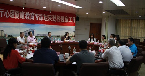图为教育厅心理健康教育专家与我校相关负责老师进行交流