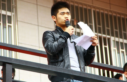 来自文法学院2012级法律专业的向永昌代表老生发言。他建议同学们大学应该要树立明确的目标,始终保持对生活和学习的热情,努力拼搏,学好大学知识,收获美好未来。