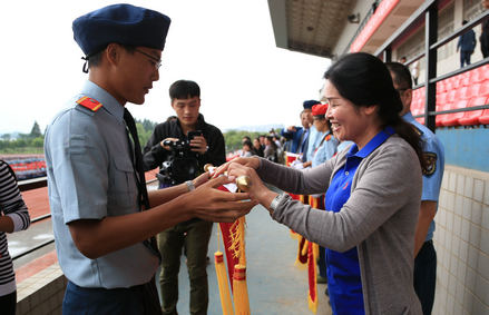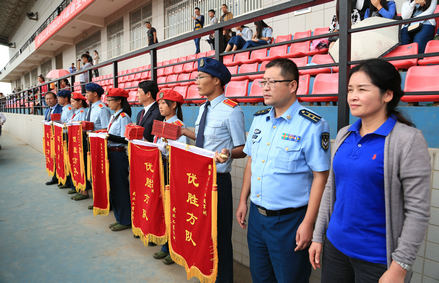 图为彭秀春董事长为优秀方阵颁奖 摄影:林典