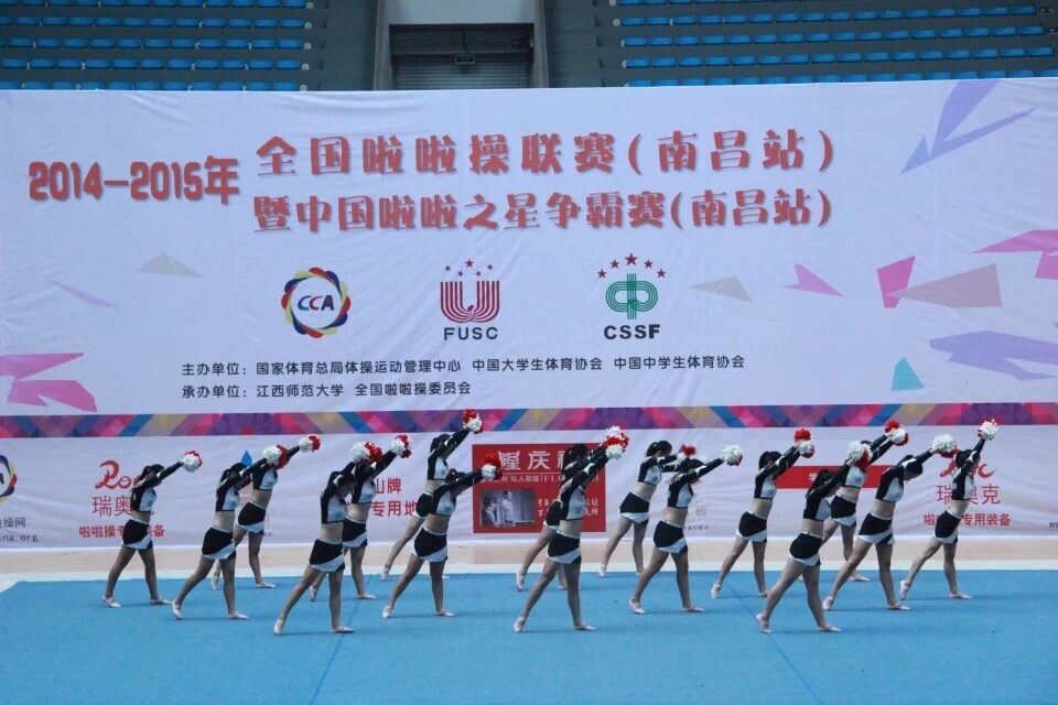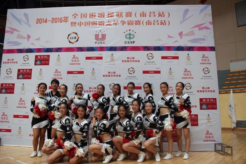 比赛现场,队员们以自信的微笑,饱满的激情,娴熟的动作,创新的样式受到了裁判和现场观众的好评,获得花球规定动作项目和花球自选动作双料冠军,其中花球规定动作以全场最高分633分(高出第二名20分夺冠)并引发现场观众的热烈欢呼。同时队员张璐参加了啦啦之星的比赛,与36支队伍中选派的20余名佼佼者同场竞技并最终荣获第一名,获评“啦啦操联赛赛区之星”,并将参加2014—2015年中国啦啦之星争霸赛总决赛。