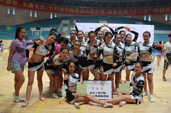 此次比赛分为高职高专、普通高校和体育院校三个小组。武汉工商学院啦啦队由朱宇光老师担任领队,24名学生队员参加了普通高校组的花球规定动作和花球自选动作两个项目的比赛。