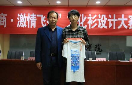 最后,校党委书记陈伟作总结讲话,他对学生们的创意给予了充分的肯定,并对获奖学生作品的特点进行了精彩点评。“比如童顺的作品《畅游》,上面设计的“鱼”尤其引人注意,体现了当代大学生的创意思维和渴望摆脱束缚的想法,跟社会的发展很接轨”,他强调,学校要注重对学生“三创”意识的培养,即创新的意识、创意的思维、创造的能力,这对深化学校应用型人才培养模式改革,推动学校转型发展具有重要的意义。他还表示,文化衫设计大赛能够激发同学们对于艺术的兴趣,营造浓厚的校园艺术氛围,特别是为毕业生们送上了一份温馨的祝福。