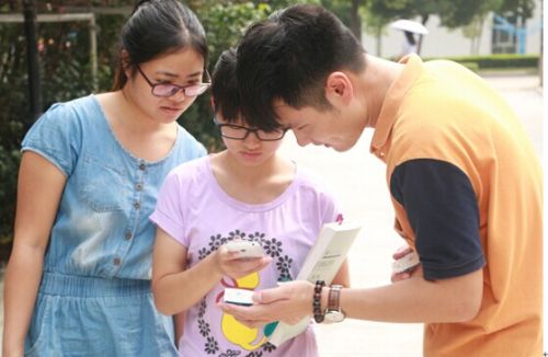 武汉工商学院学生火热扫码中 中国青年网湖北频道记者 贾黎明摄