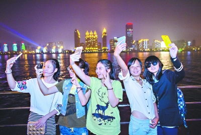 最先“开拔”的是前日的两江夜游。乘坐豪华游轮的大学生们畅游长江及其最大支流汉江,全方位欣赏两岸人文历史景点和近现代建筑,欣赏色彩斑斓的灯饰和高楼,充分感受江城“最风情”的一面。