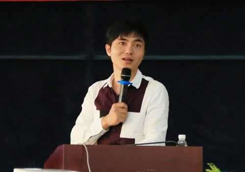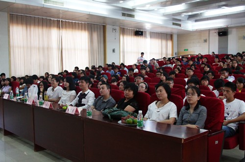 图为潘虎为新生作生动演讲 摄影:林典