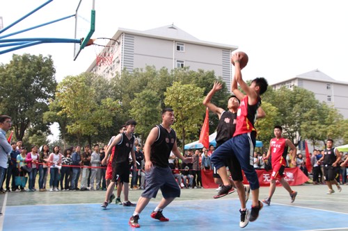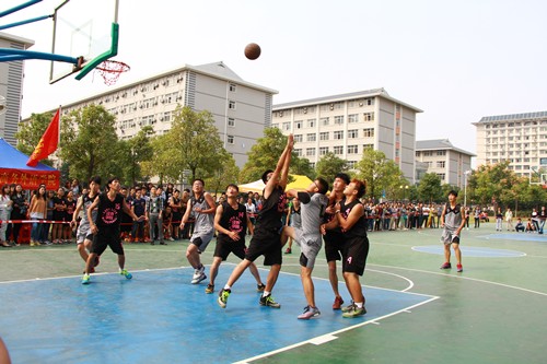 新闻中心讯(记者李洋洋 何小旭 见习记者胡心怡 陈亚平 龙娅芳)“以球会友, 以德育人”。10月13日中午,武汉工商学院第二届“天翼新生杯”篮球赛在体育馆前篮球场开幕。首场比赛分两场同时进行:经济与商务外语学院对战信息工程学院和环境与生物工程学院、电子与商务外语学院对战管理学院,最终,经济与商务外语学院、管理学院分别胜出。