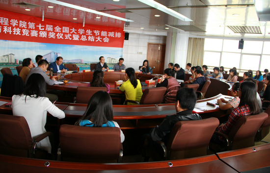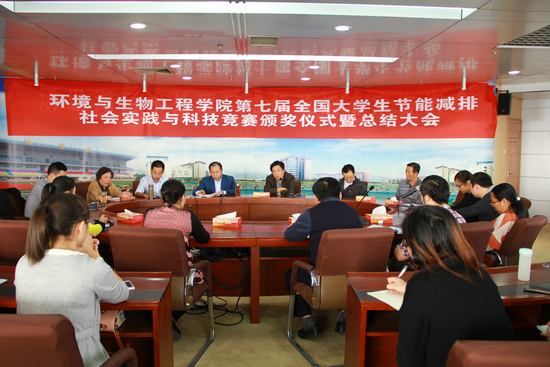 新闻中心讯(见习记者 王新 宇吴冬)10月23日下午,武汉工商学院环境与生物工程学院大学生社会实践与科技竞赛颁奖仪式暨总结大会在该校第一会议室召开。武汉工商学院党委书记陈伟,副校长卢炎生出席大会,教务部部长吴敏,学工部部长陈义文,环境与生物工程学院副院长吴士筠、徐承睿,党总支书记邱微鹏以及第七届全国大学生节能减排社会实践与科技竞赛的参赛指导老师和学生参会。会议由邱微鹏书记主持。